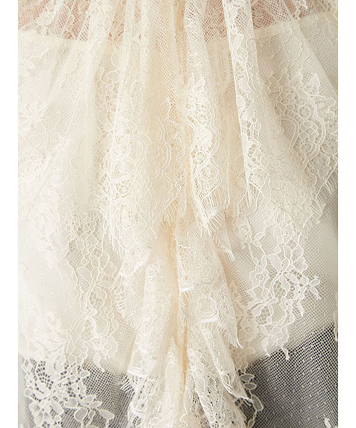 ヴィンテージライクなレースをベースに、前開きと袖口には表情が異なるレーステープを挟み込み、上品な奥行きを表現しました。