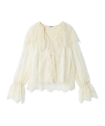 ラッフルカラーレイヤードレースブラウス