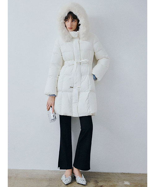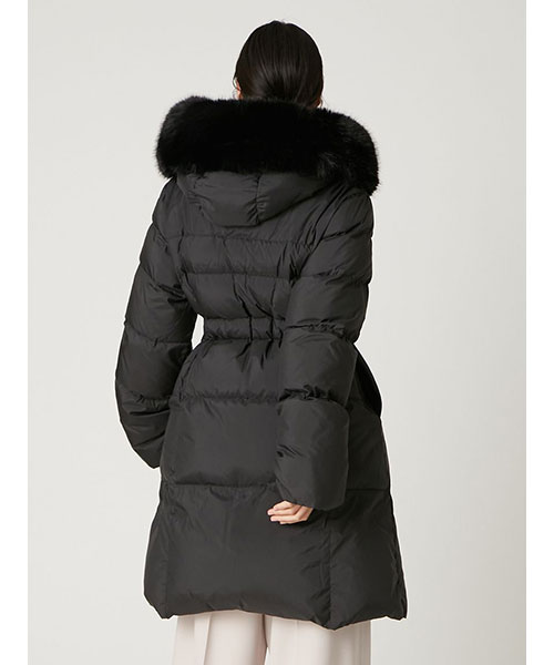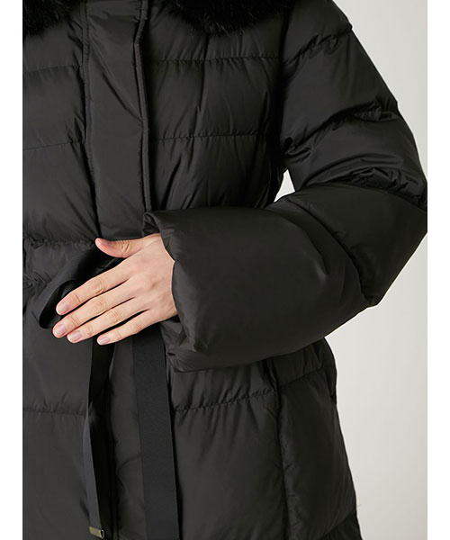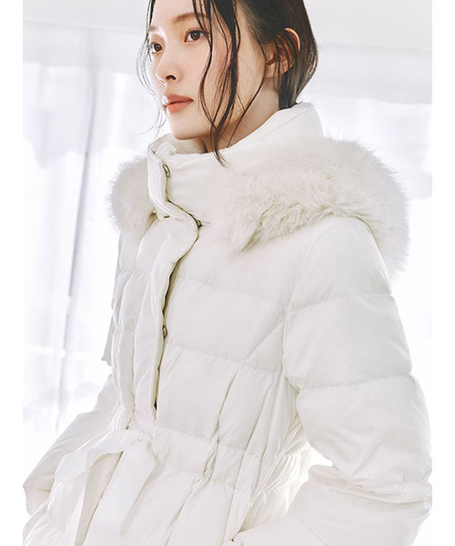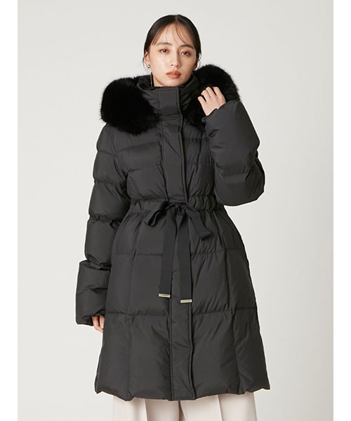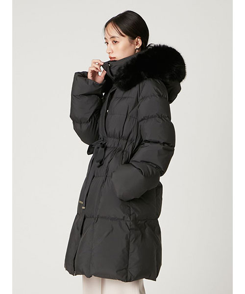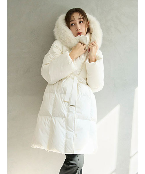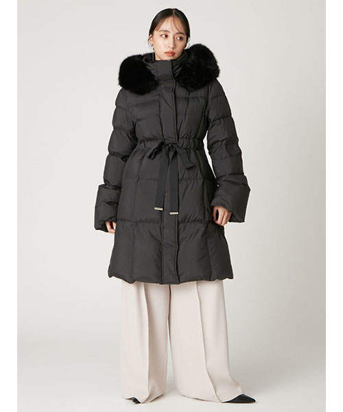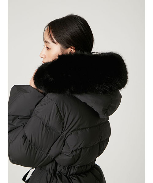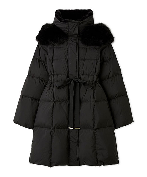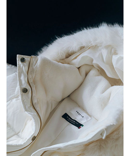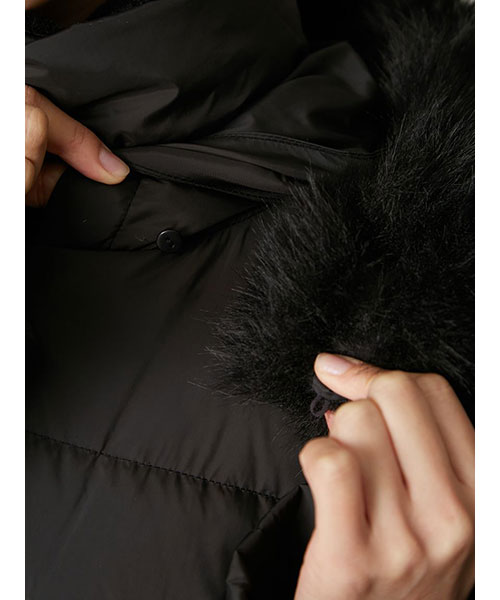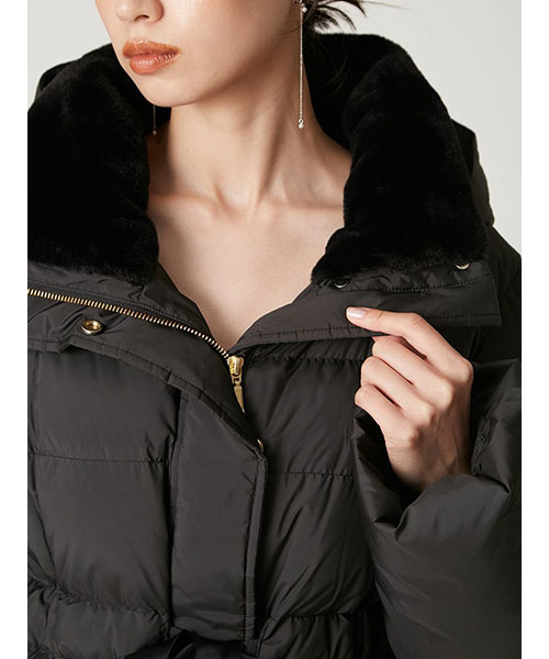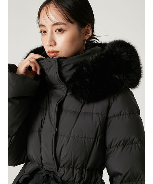 フードに贅沢にあしらった取り外し可能なファーもエレガントに映えます。