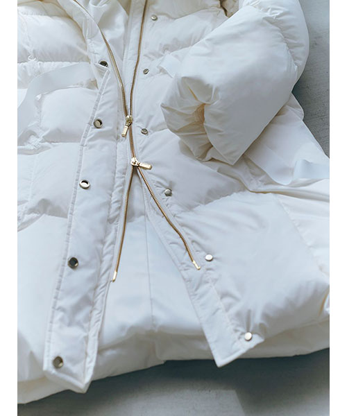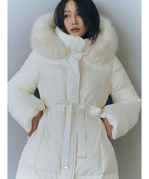 美しいシルエットに華やかなディテールを散りばめたロングダウンコートは、冬のバディにぴったり。