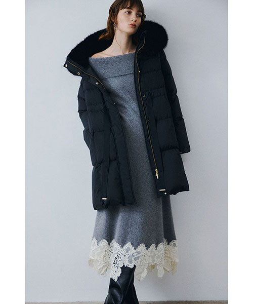 美しいシルエットに華やかなディテールを散りばめたロングダウンコートは、冬のバディにぴったり。