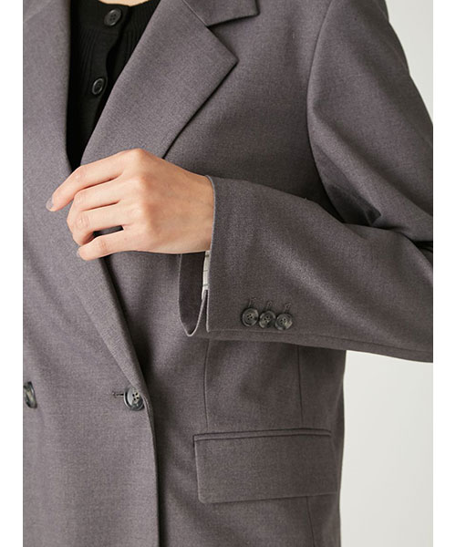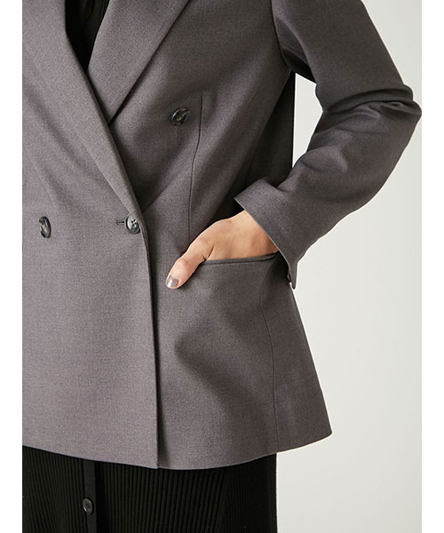 ダブルフロントで、スマートな印象のテーラードジャケットです。