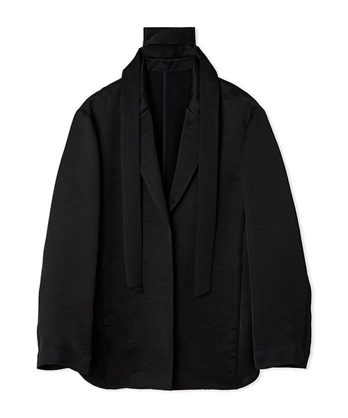 【シャツ代わりにさらりと羽織るのもおすすめ。ナロータイも付属のサテンジャケット】【Design/Styling】