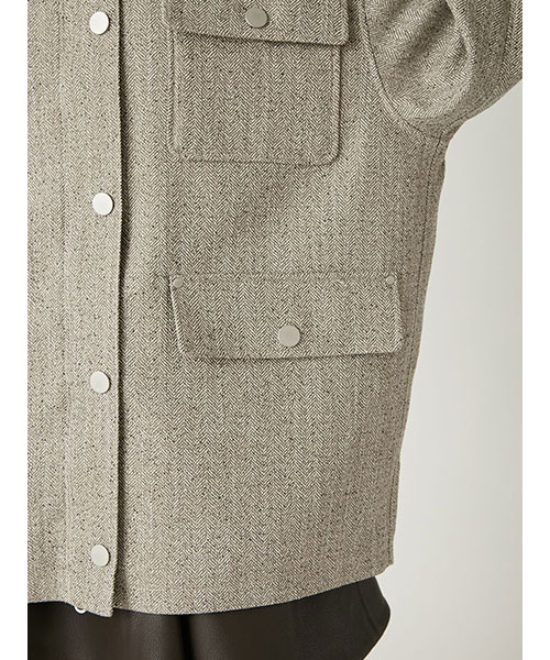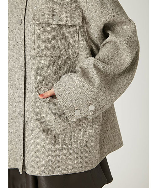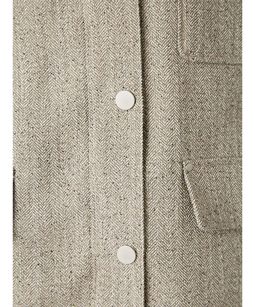 素材 | [BEG]ポリエステル65%、レーヨン34%、ポリウレタン1% [CML]ポリエステル100% [GRY]ウール50%、レーヨン30%、ポリウレタン20% 襟部分:合成皮革 裏地:ポリエステル100% |