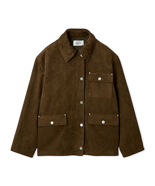 CMLは、トレンド色のフェイクスエード。襟も同じ素材でソリッドに仕上げています。