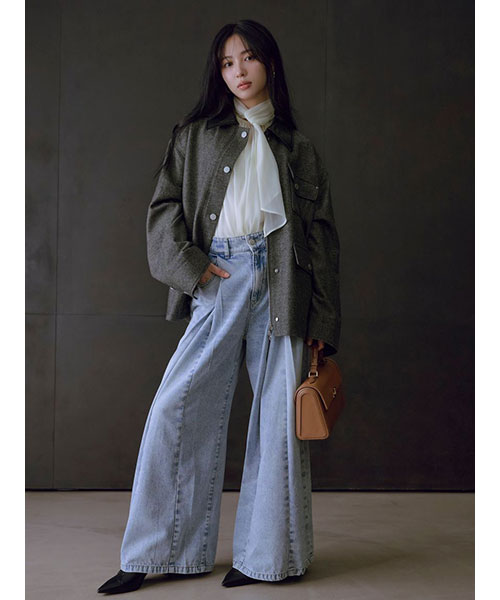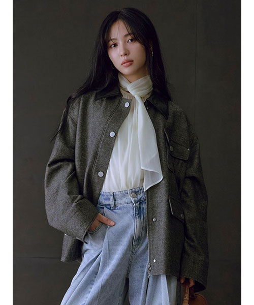 トレンドのハンティングジャケットをベースに、モードカジュアルにリデザイン。