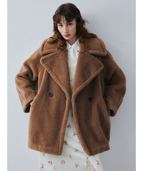フランス・ECOPEL社のウール混ボア素材を使用した、リッチなミドルコートです。