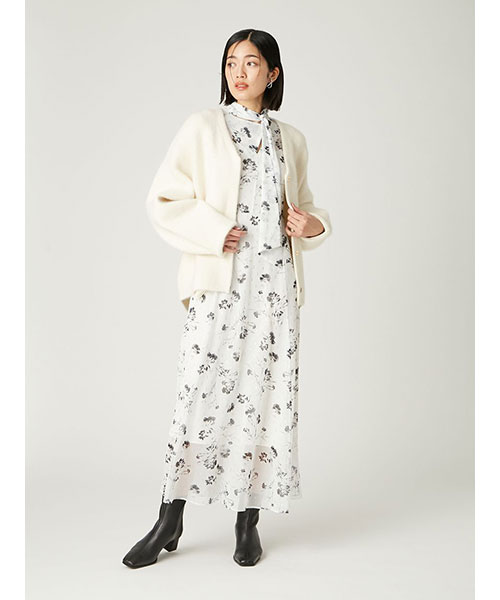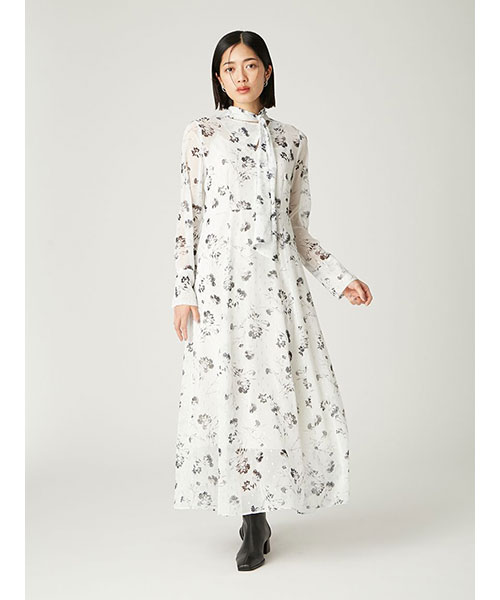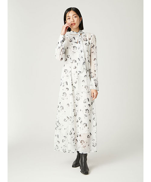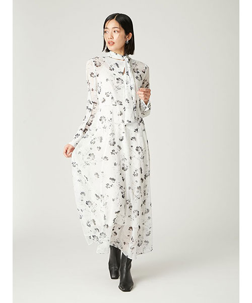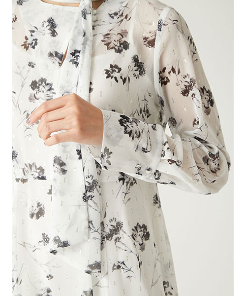 一枚で上品な華やかさが際立つ、毎年人気のシアーなボウタイワンピースです。