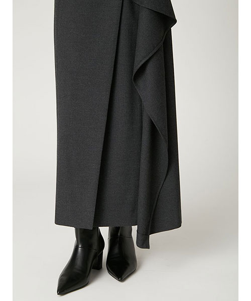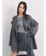上衿を大きくした印象的なラペルと、飾りポケットから流れるようにあしらったアシンメトリーなフレアでスタイリッシュに仕上げました。