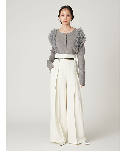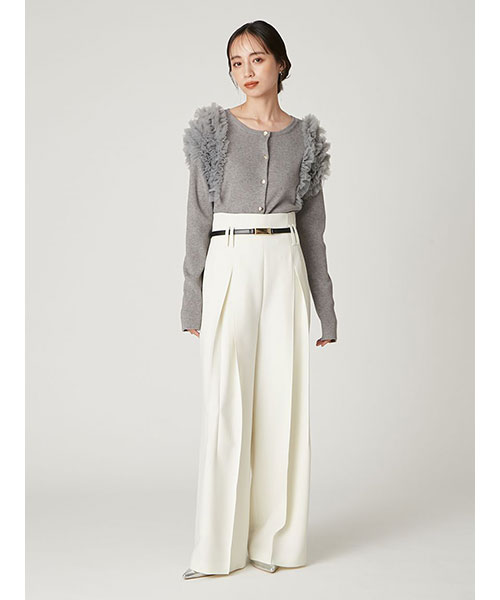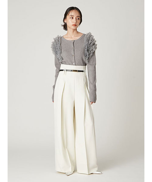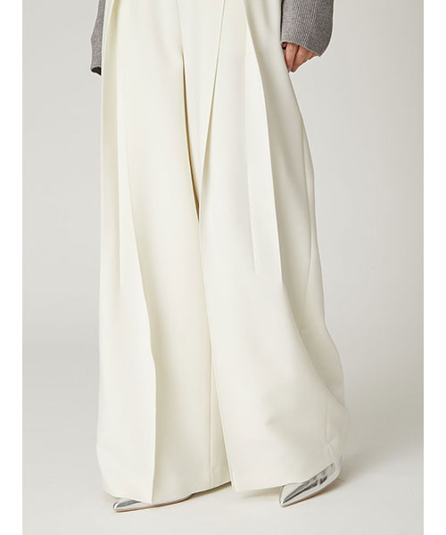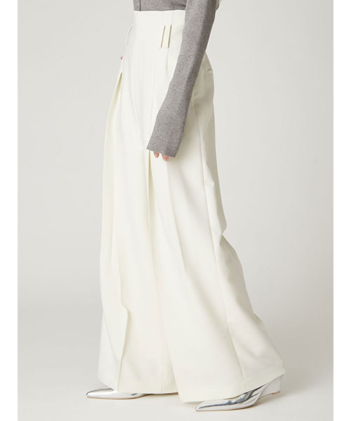すっきりとした腰回りから広がるワイドシルエットは、サマになる計算し尽くされたバランス。