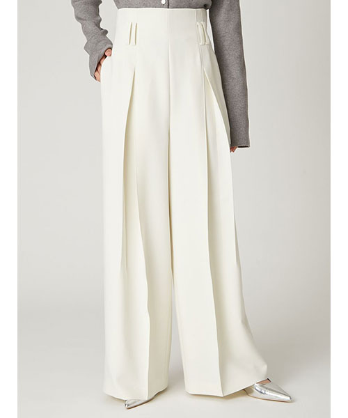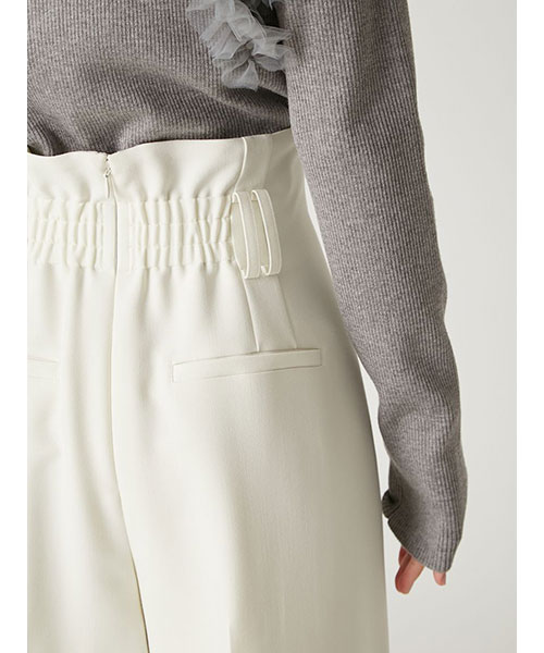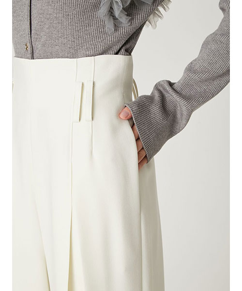 コルセットのようなデザインでひねりを効かせたハイウエストパンツ。