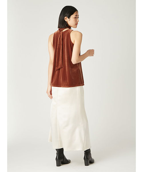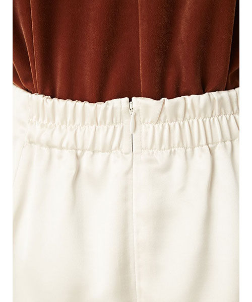 しっかりとした肉感があり、とろみと落ち感があるリッチなサテン地を使用。裏地付きで安心感も。