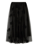 繊細なチュールをベースに、フェイクスエード素材と刺繍を重ねた、ラグジュアリーなスカートです。