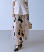 【軽やかなチュールスカートを、オリジナルのバラモチーフで華やかに飾った、華のある一枚】【Design/Styling】
