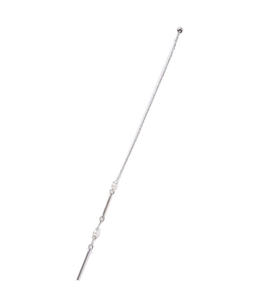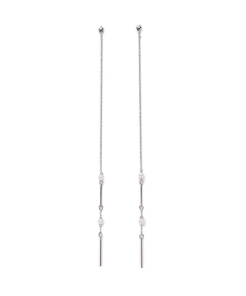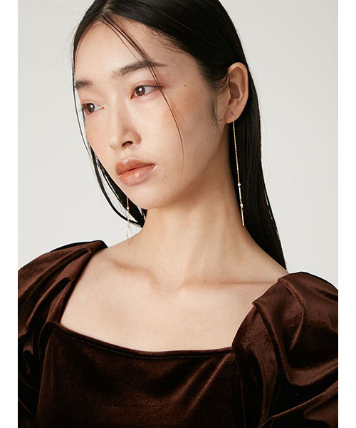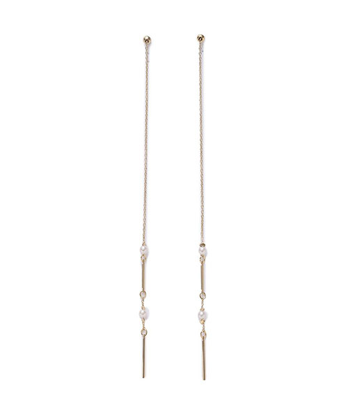 細チェーン×小粒パールで華奢に仕上げたピアスがセンシュアル。