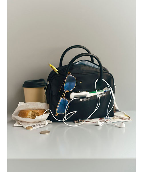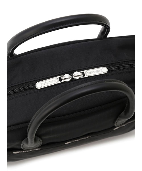 ミニマルなボストン型に、LeSportsacのロゴテープがアクセントのデザイン。