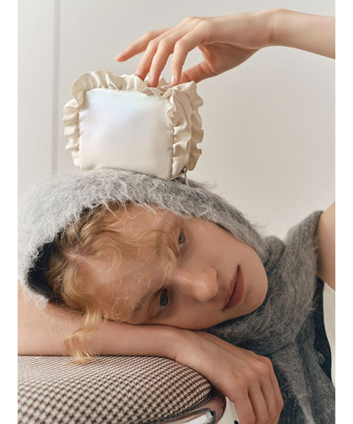 シンプルなスクエアフォルムに立体的なフリルをぐるりとあしらって、洒落た甘さをプラス。