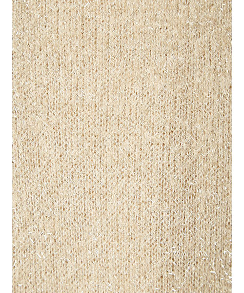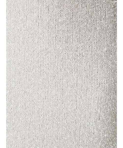 光のニュアンスをまとうきらめくニット地は、接結仕立てによって、ふっくらとした厚みを出しています。しっかりとした素材感は安心感もあり、ボディラインを拾いすぎないのも嬉しいポイント。
