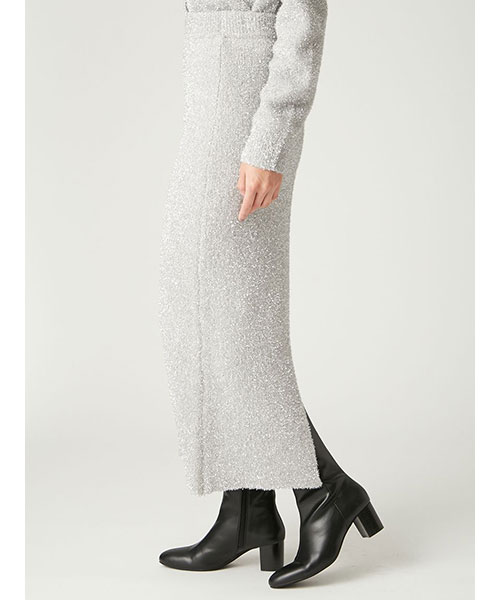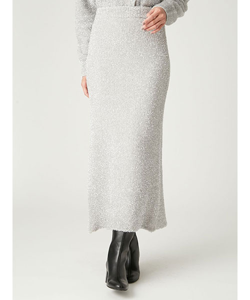 【立体的にきらめくラメ糸でリッチに。カジュアル合わせにも映えるニットスカート】【Design/Styling】
