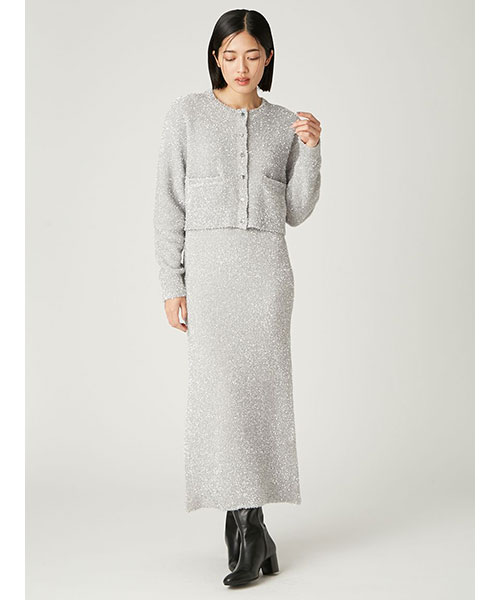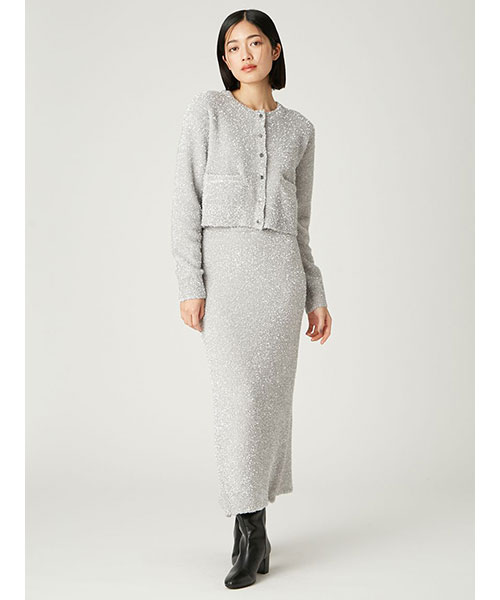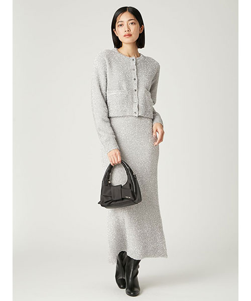 また、同じ糸を使用したスパークルフェザーカーディガン(FWNT255033)とのセットアップで、ドレッシーに装うのも大人なコーディネートです。