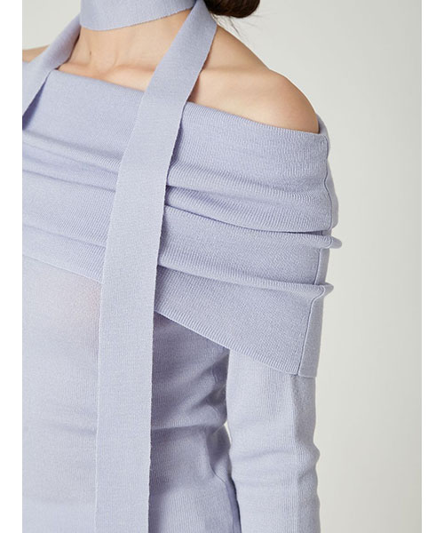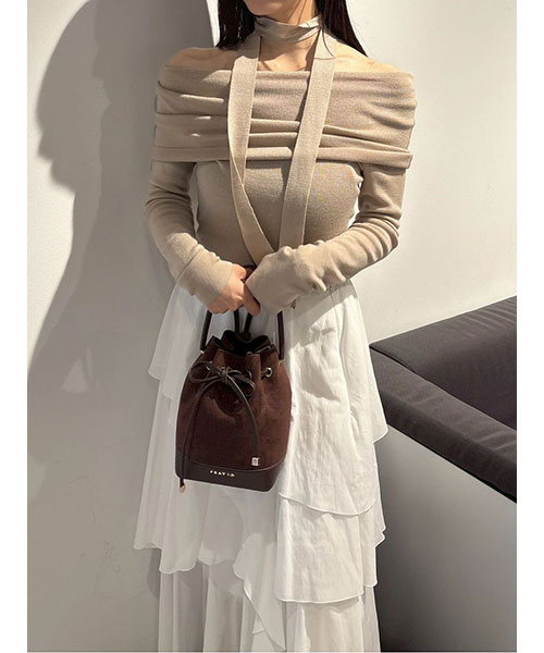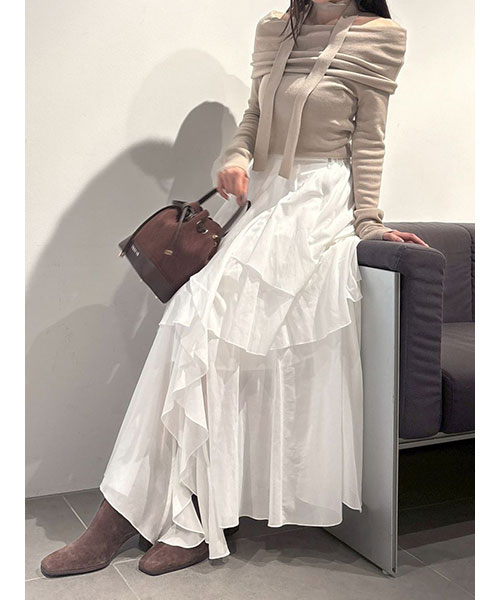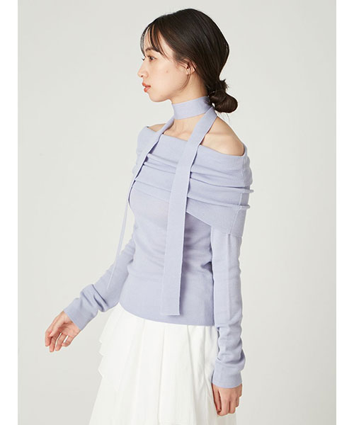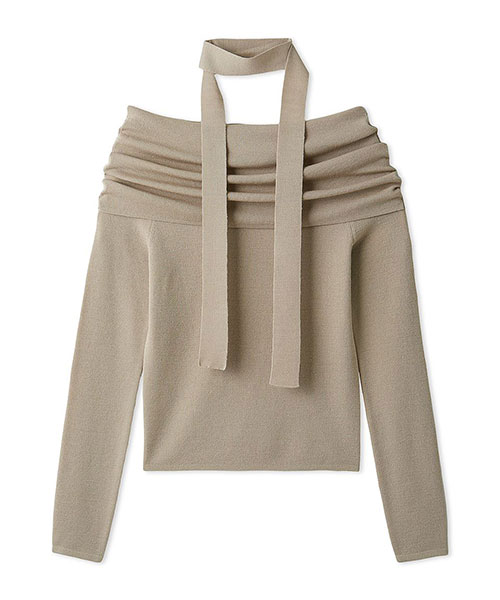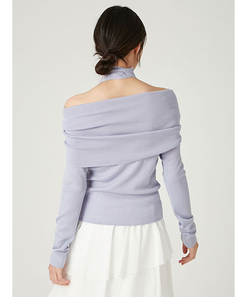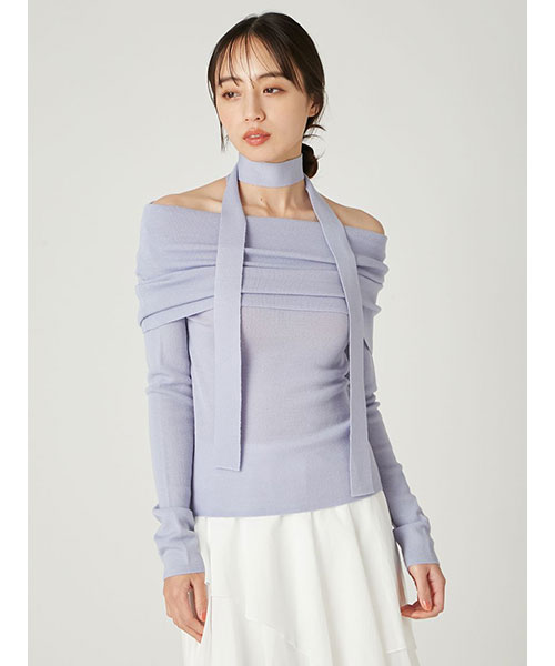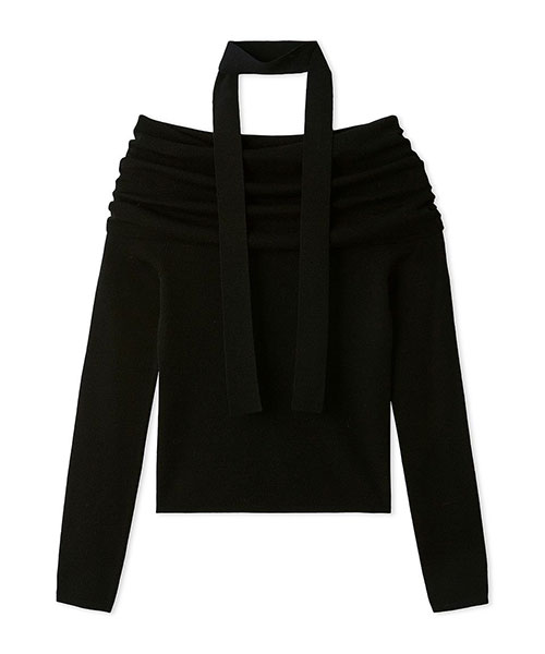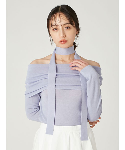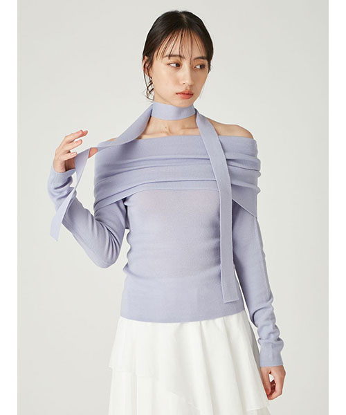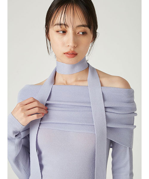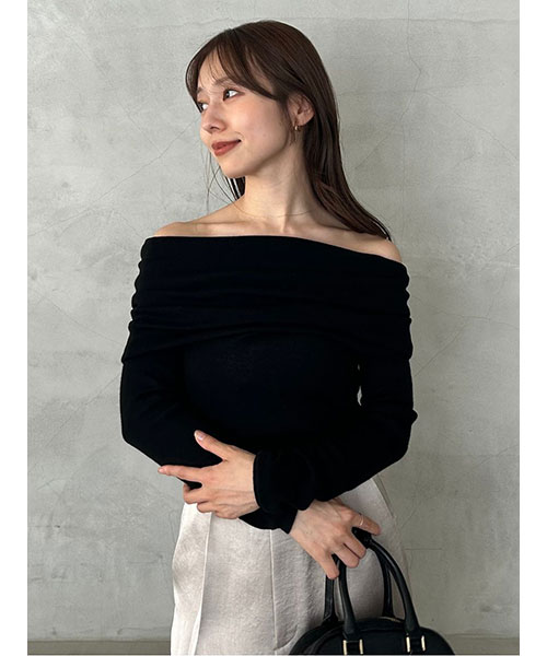 【シルキーなウール混糸で上品に仕上げたオフショル。人気の細ボウタイもセットに】【Design/Styling】