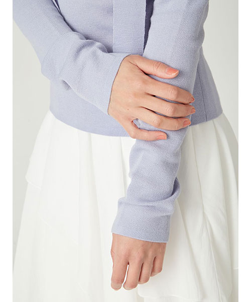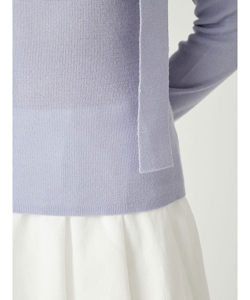 繊維が細いメリノウールとアンチピリングのアクリルを混紡した糸で編み立てた、シルキータッチで柔らかな風合いのニットです。
