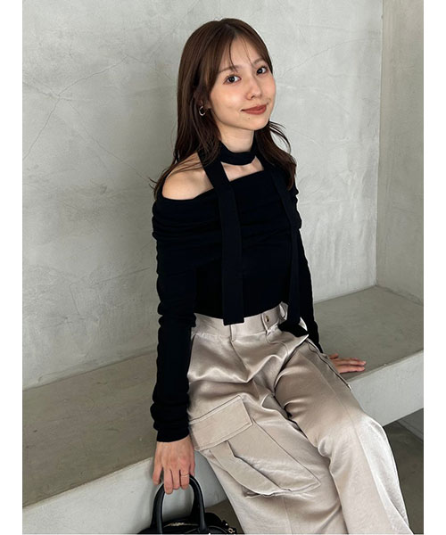 また、オフショルダーにもワンショルダーにもなり、肩を隠して着ることもできるので、シーンに合わせて程よい肌見せが可能。