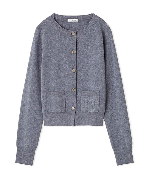 ロゴ刺繍ポケットクルーネックカーディガン/ウォッシャブル