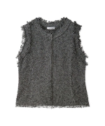 裾や袖口のフリンジや、フロントの金属ジップデザインがモードな印象の、ノースリーブジレです。