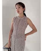 【こだわりの糸で編み立てたツイードライクなニット地を、モードな印象のジレに】【Design/Styling】