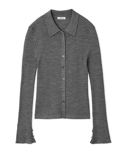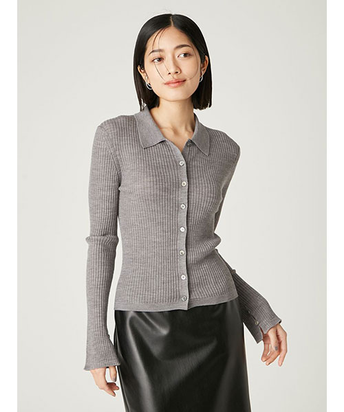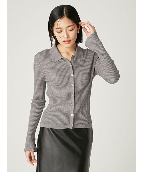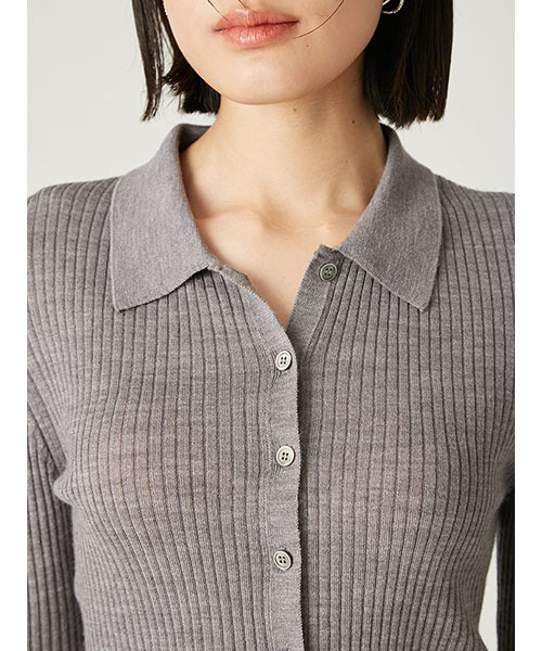 【ほんのり透け感と軽さのあるポロニット。前開きデザインで、カーデとしても活躍】【Design/Styling】