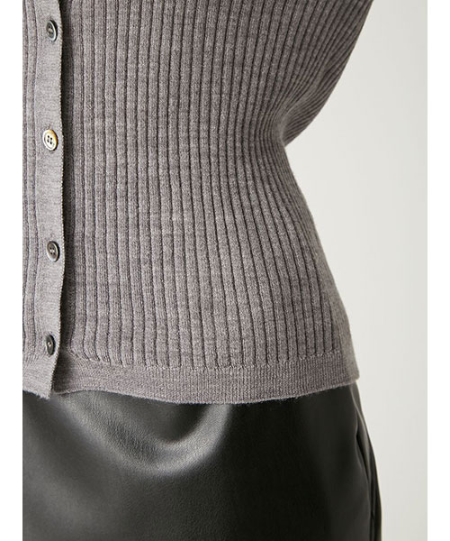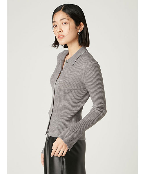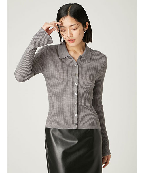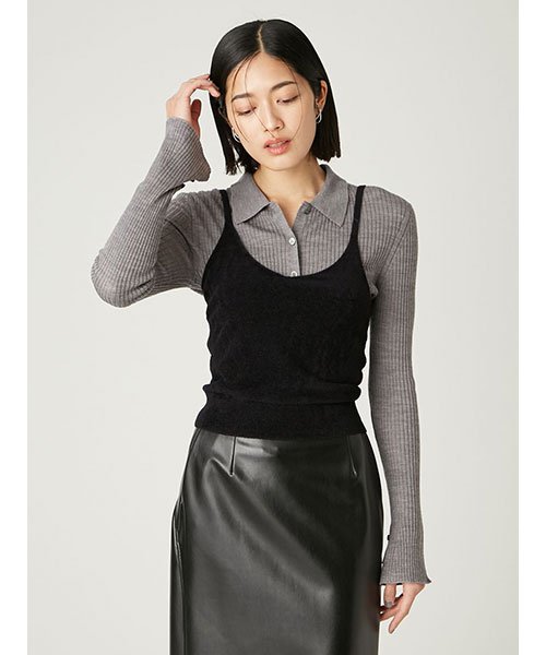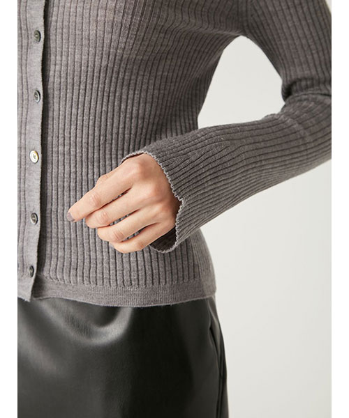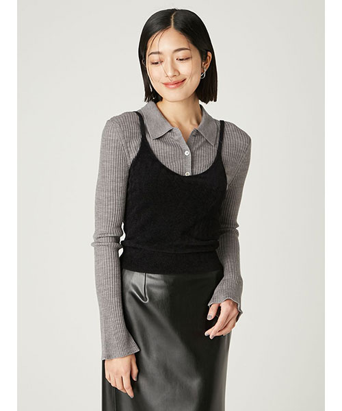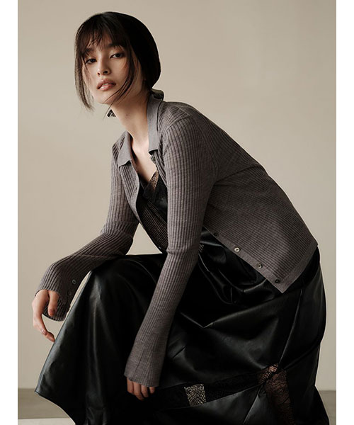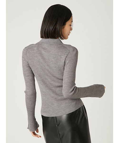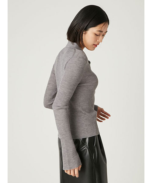 軽い透け感とウォーム感を兼ね備えたリブ編みは、程よくボディーにフィットするシルエットがフェミニンさをプラスします。