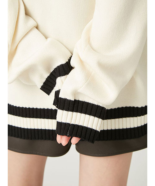 首回りや袖口、裾にラインを入れて、デザインポイントに。また、太めのリブはフィット感を高め、シルエットを美しく保ってくれます。