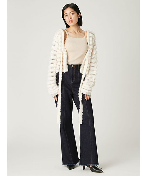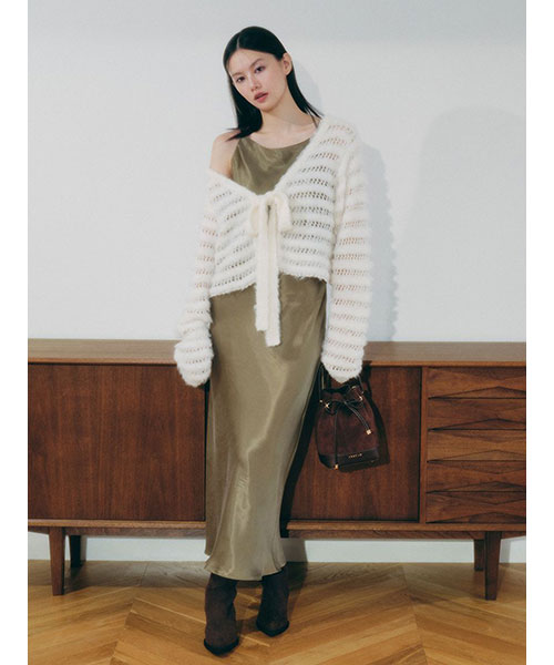 共糸で仕立てた、ふわふわのリボンディテールもさりげないアクセントに。