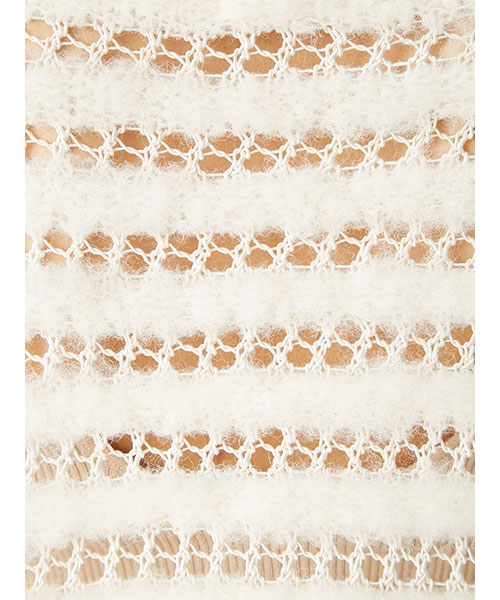 ふわふわの部分は、毛を掻いて柔らかく起毛させた糸、透けた部分はシャリ感のある糸でコントラストをつけて、表情豊かに。