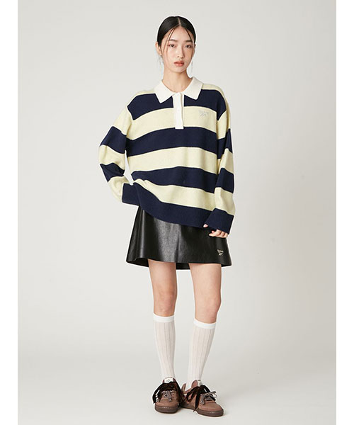 トレンドライクなラガーポロニットは、一枚で存在感たっぷり。
