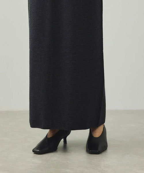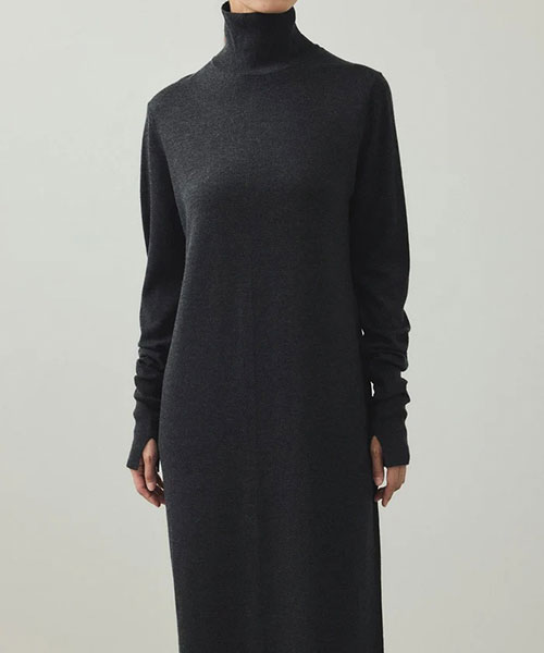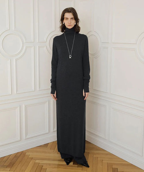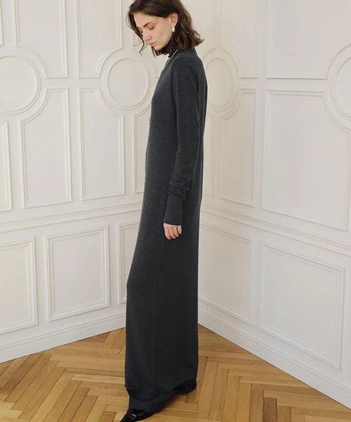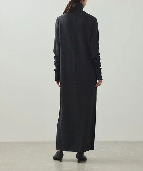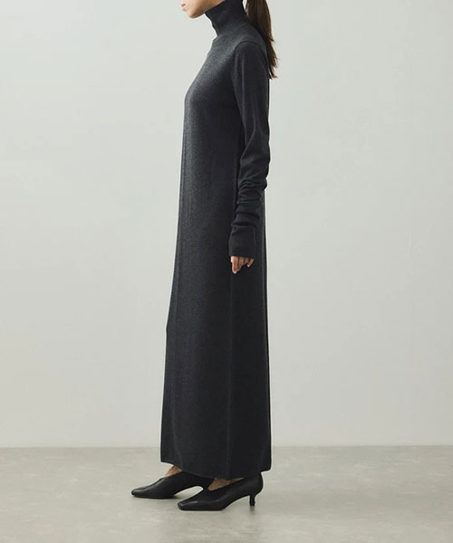 クリーンで大人な雰囲気漂うIラインシルエットのニットドレス。