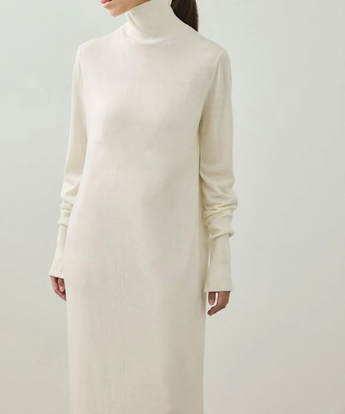 優しく体に沿うタートルと袖口で、クリーンな空気感に適度なメリハリを付けたデザイン。