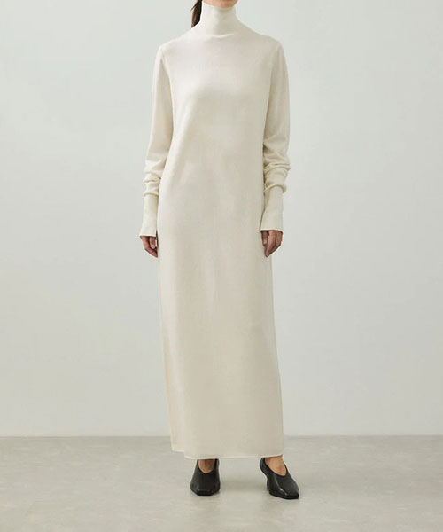 クリーンで大人な雰囲気漂うIラインシルエットのニットドレス。