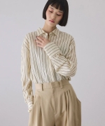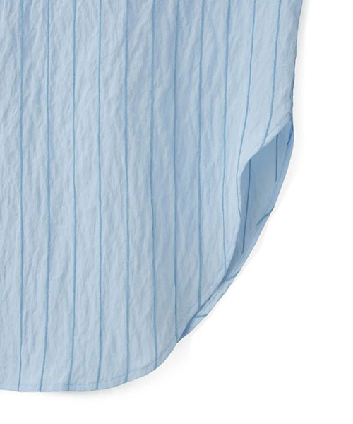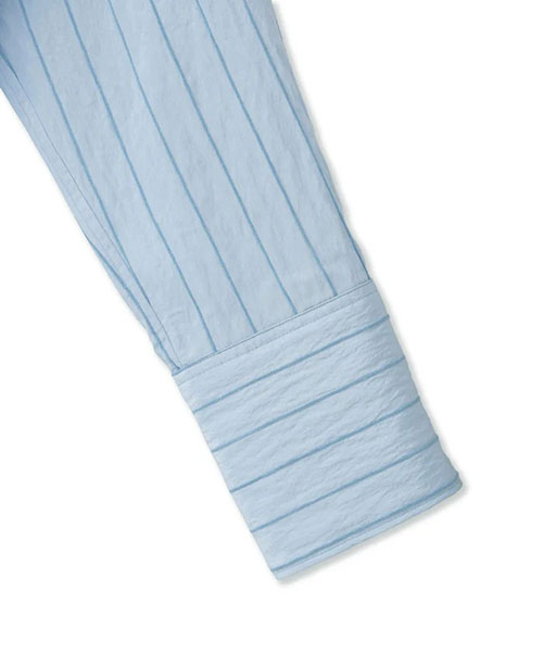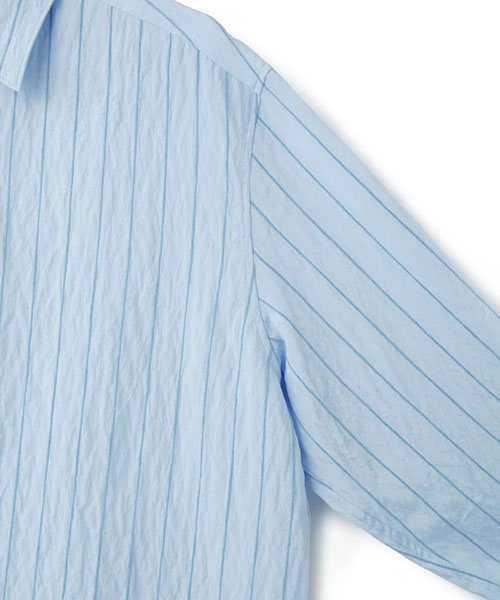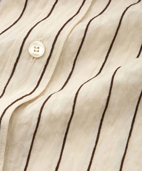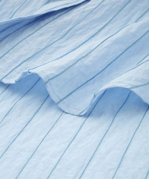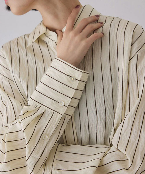 ポリエステルのハリコシと軽さ、レーヨンの滑らかさを兼ね備えたストライプ生地。