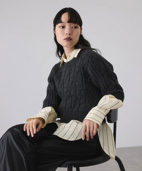 ヒップまで隠れる丈感なので、タイトスカートと合わせるものおすすめ。