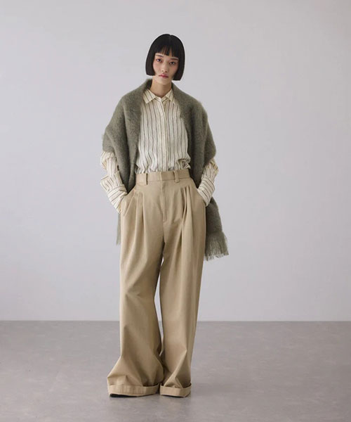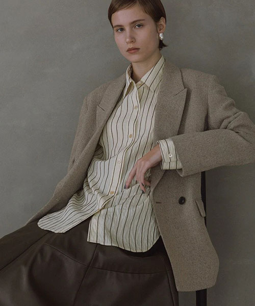 肩幅をやや広めに設定しリラックスしたこなれ感のあるサイジング。