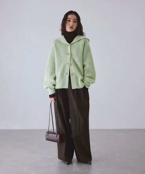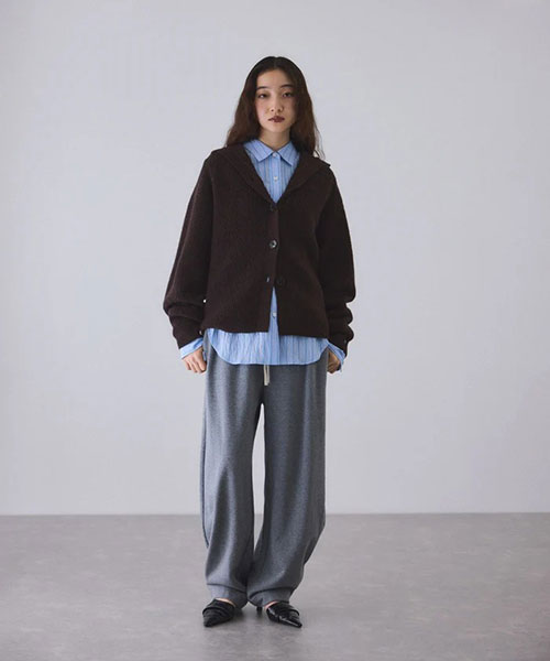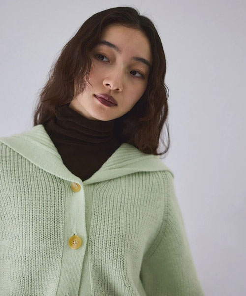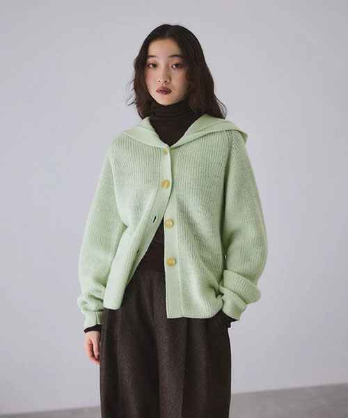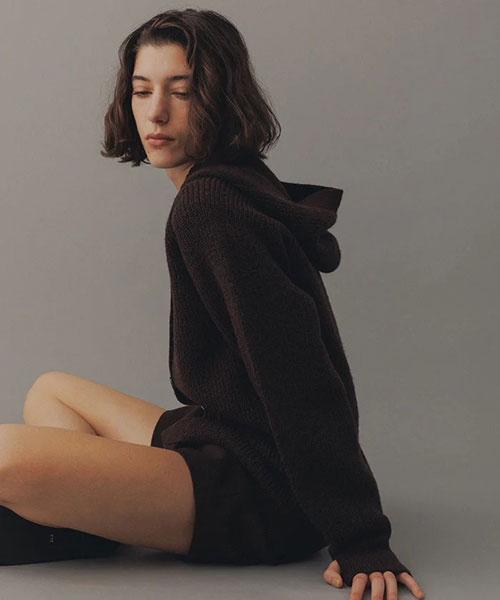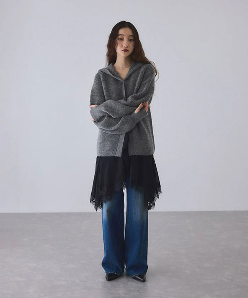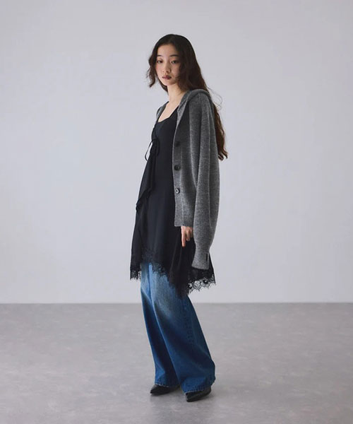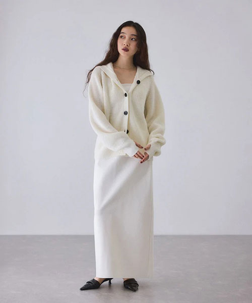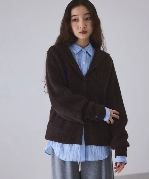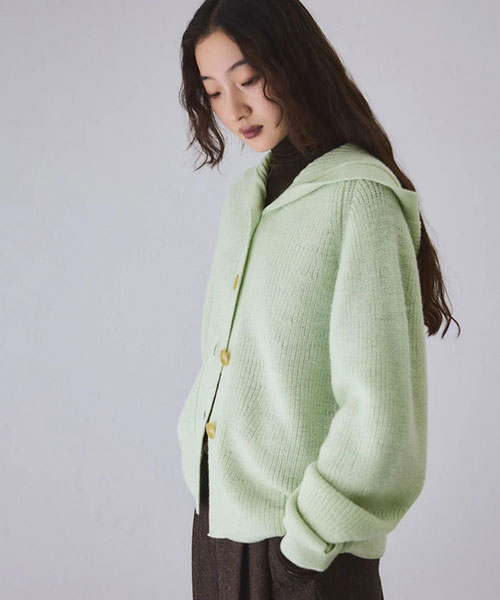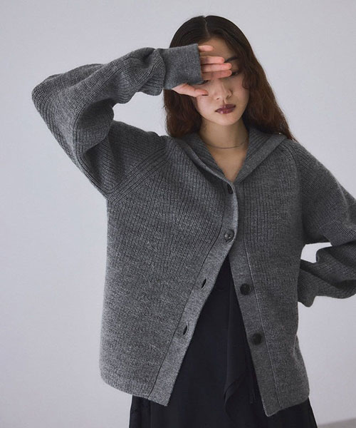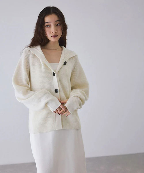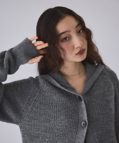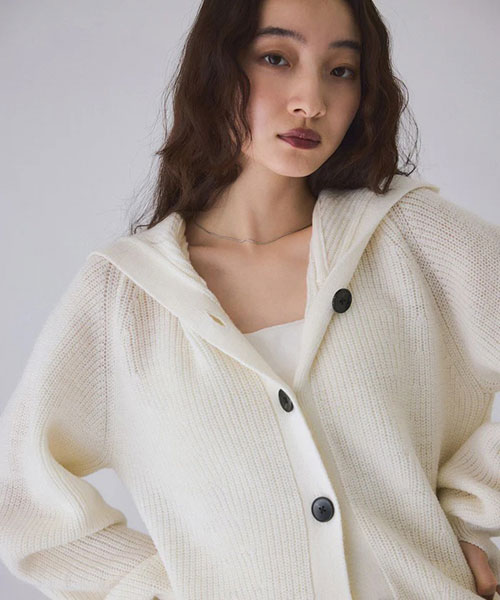《環境配慮》ゆったりとしたフォルムと女性らしい首元で抜け感を演出。羽織でも1枚着でも着映える、大人のフーディスタイルを楽しめるウールカーディガン◆25AW◆