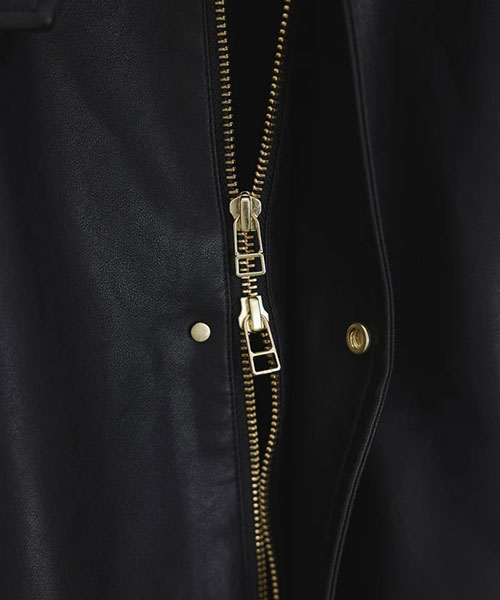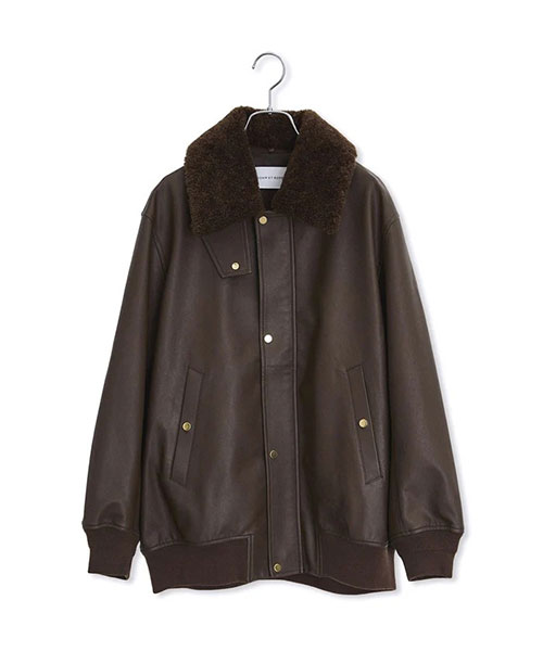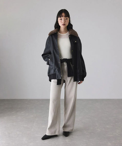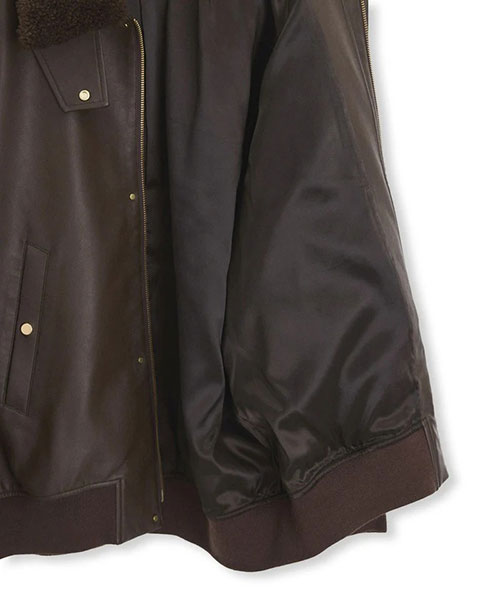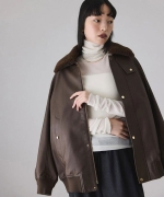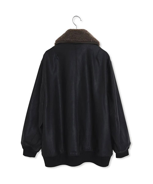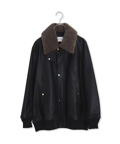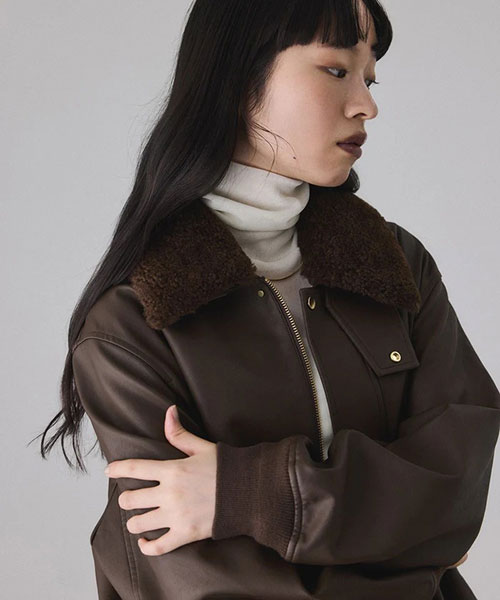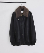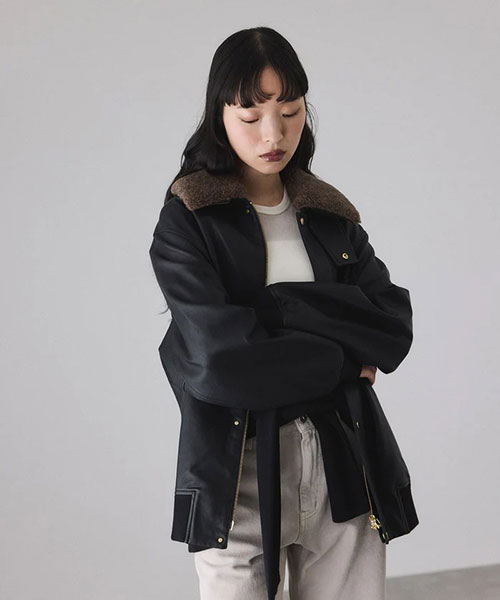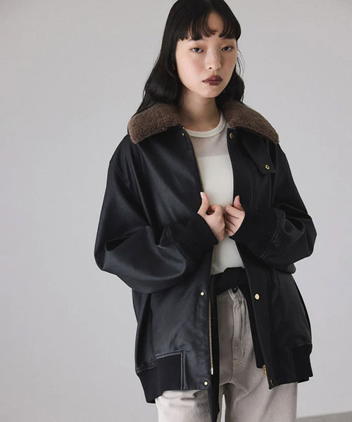 襟のボアやゴールドの附属がアクセントになるフライトジャケット。