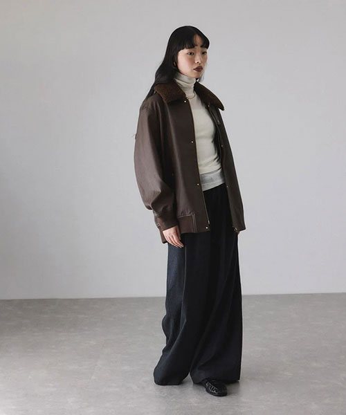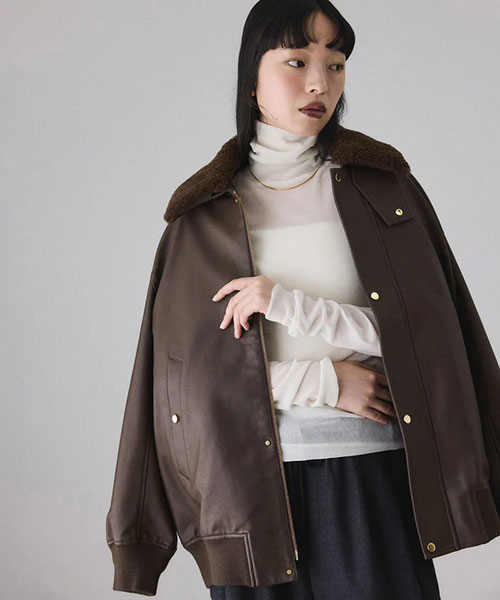 ネックのアレンジで様々な雰囲気を楽しめる一着。マットな質感のレザーが洗練された印象のフライトジャケット◆2025-26秋冬◆