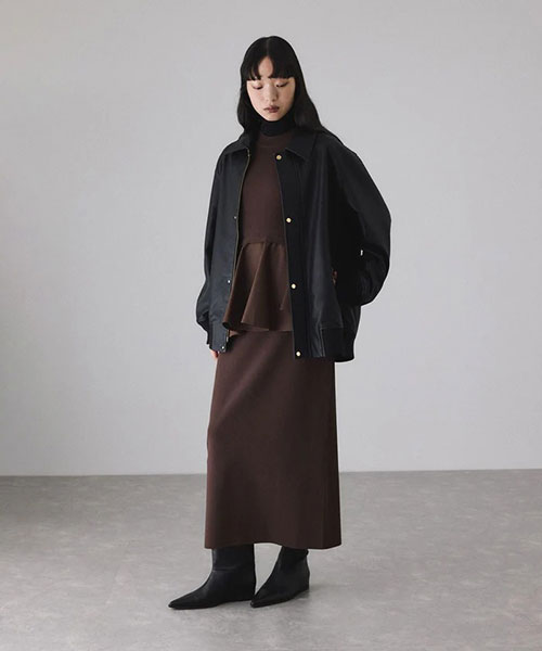セミフレアパンツやワイドスラックス合わせ、リーンシルエットのニットワンピースに羽織るのも素敵。