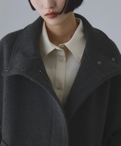 襟を立てて着用しても、素敵に決まるスタンドネックがポイント。