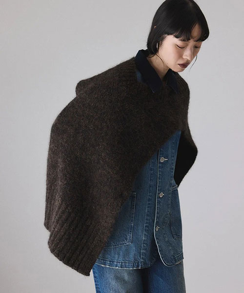 シャツやロンTに重ねたり、ポンチョとしてカバーオールデニムやアウターの上に着用するのもおすすめ。