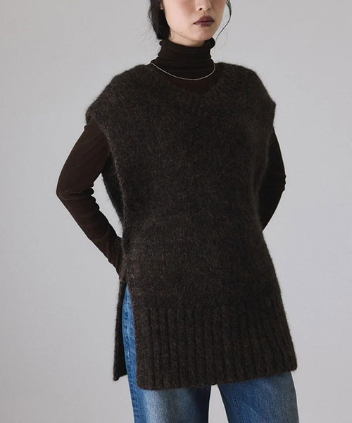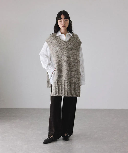 多彩なアレンジ力で飽きのこない一着。シンプルにベストとして重ねるのはもちろん、レイヤードの仕方で新鮮なコーディネートが完成するVネックニットベスト◆2025-26秋冬◆