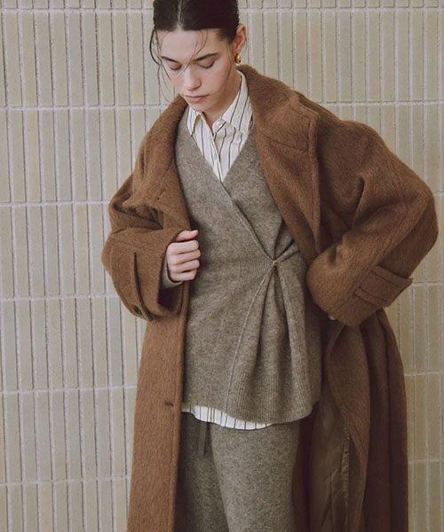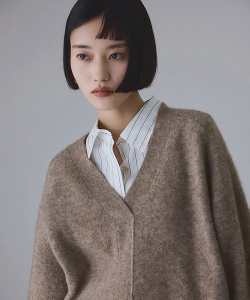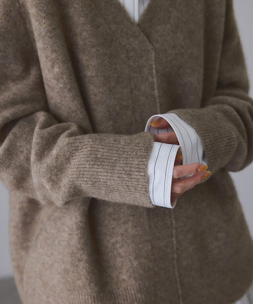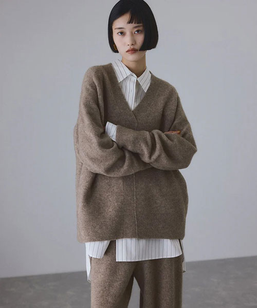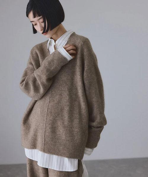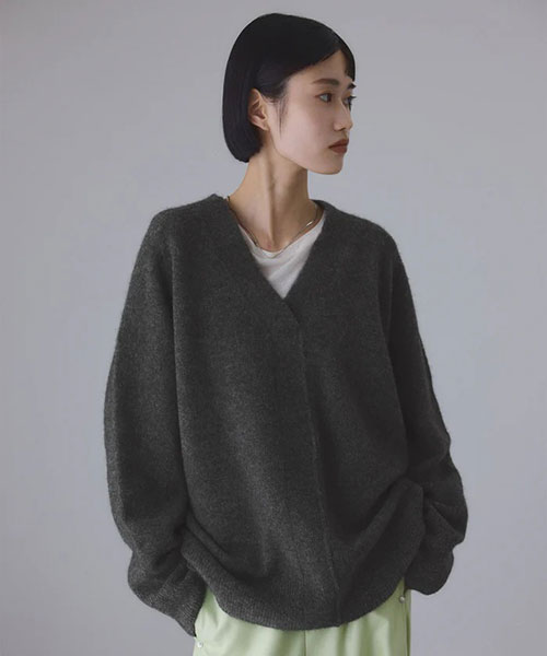 《環境配慮・セットアップ対応》エアリーで柔らかなフォルムがこなれ度アップ。ボタンを留めてカシュクールスタイルでも着映える、シンプルで飽きのこない大人のVネックプルオーバー◆25AW◆